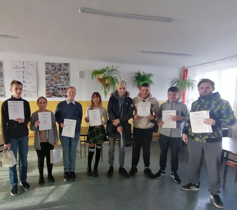 Za udział w konkursie wszyscy uczestnicy dostali dodatnie punkty z zachowania, dyplomy, glejty bezpieczeństwa a zwycięzcy konkursu także nagrody rzeczowe. Organizatorem konkursu była p. Aleksandra Klajnert-Dudek.