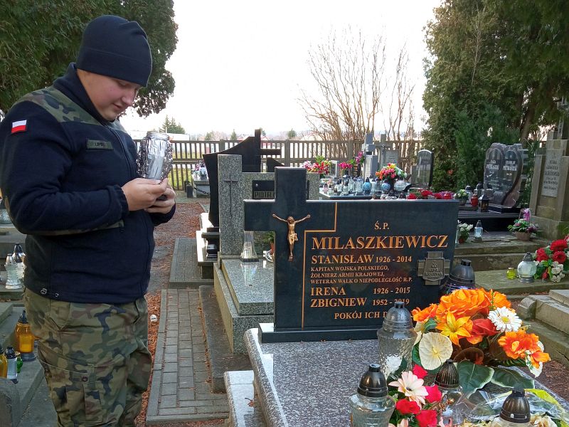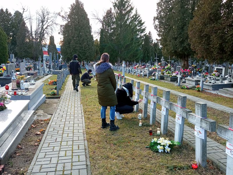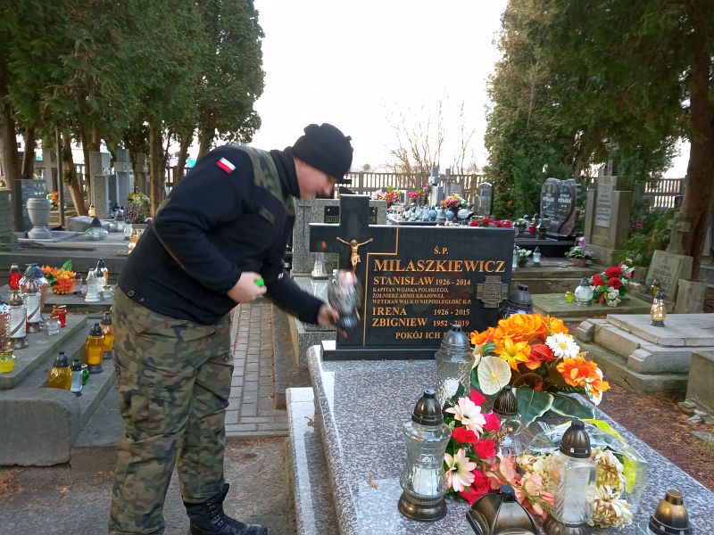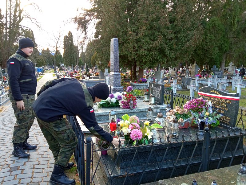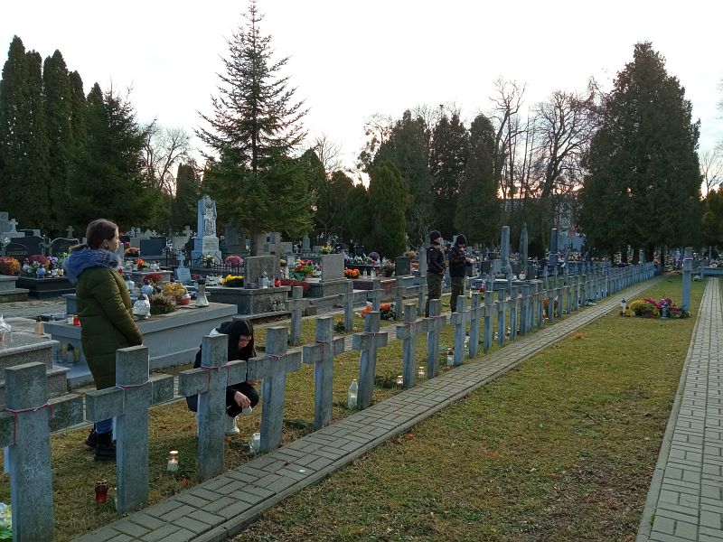 Listopad w polskiej tradycji stanowi wyjątkowy miesiąc pamięci o tych, którzy od nas już odeszli. Kultywując tę tradycję, przedstawiciele klasy 1 SLo: Izabela Czegus, Anna Sieniawska, Oliwier Lipiec i Wojciech Muszyński wraz z nauczycielem historii panią Katarzyną Karamać udali się na cmentarz przy ul. Lwowskiej, by zapalić symboliczny znicz na grobach żołnierzy poległych w I i II wojnie światowej oraz weteranów - członków Światowego Związku Żołnierzy Armii Krajowej Oddział Chełm. Odeszli na wieczną wartę, ale pamięć o nich i świadectwo ich życia będą wśród nas ciągle żywe.