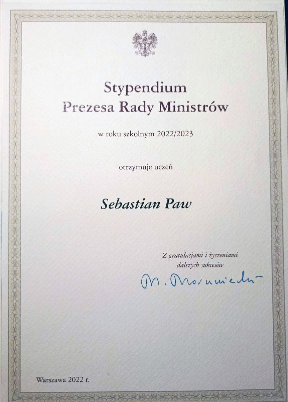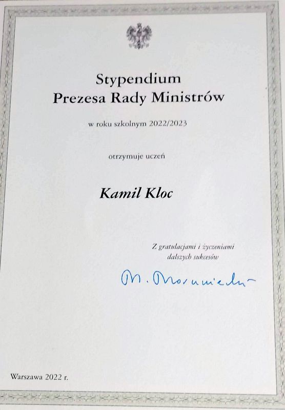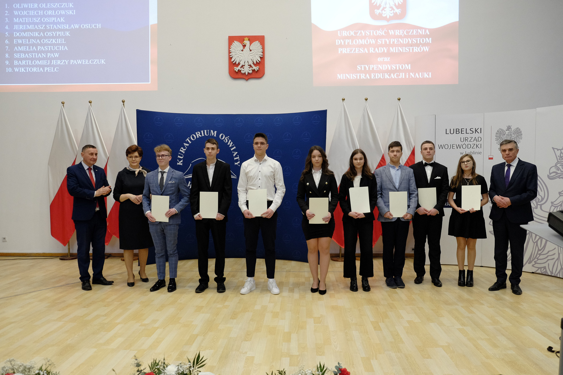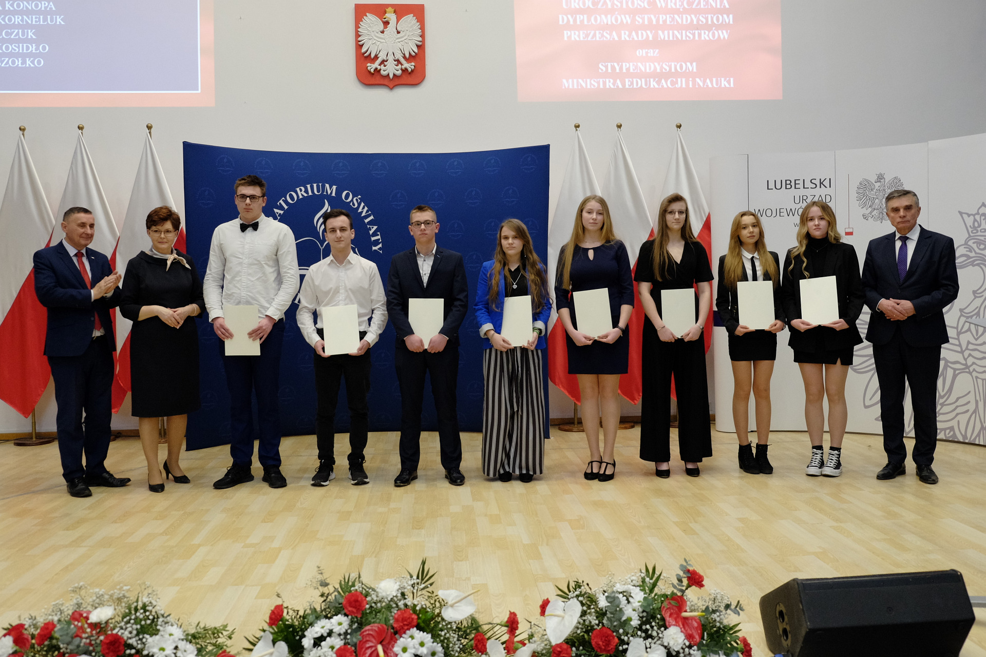 Z dumą informujemy, że uczniowie naszej szkoły: Kamil Kloc z klasy 4 technikum spedycyjnego i Sebastian Paw z klasy2 technikum transportu kolejowego są stypendystami Prezesa Rady Ministrów. Uroczystość wręczenia dyplomów z tym zaszczytnym wyróżnieniem odbyła się 20 lutego w Sali Błękitnej Lubelskiego Urzędu Wojewódzkiego .
