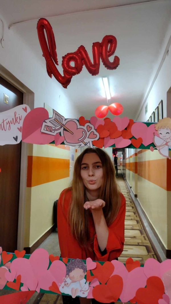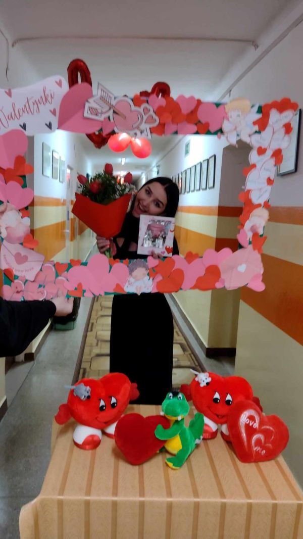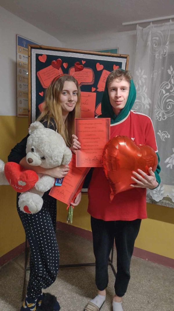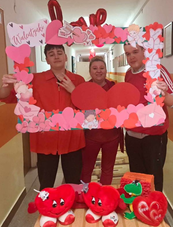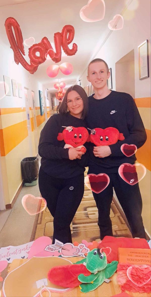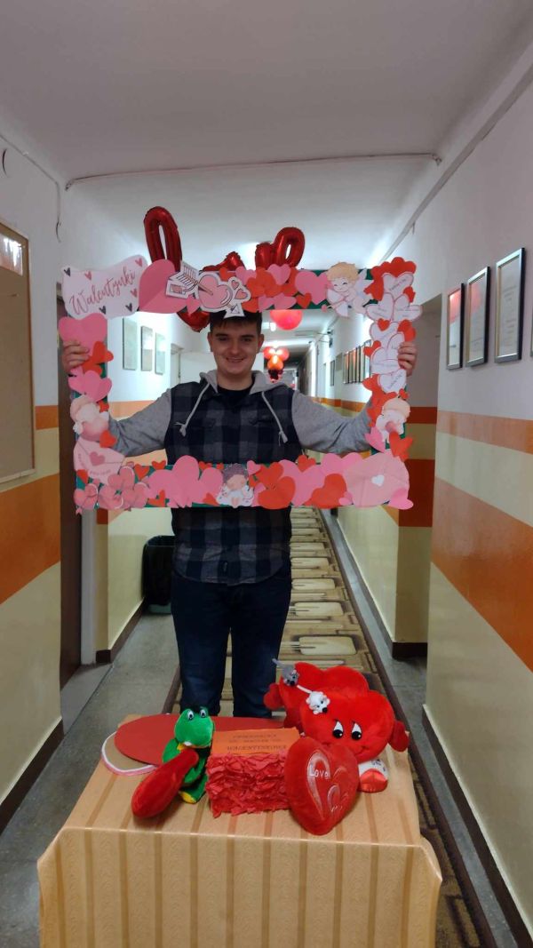 14 lutego obchodziliśmy w internacie Walentynki. Z tej okazji postanowiliśmy założyć czerwone ubrania, które symbolizowały kolor miłości. Pięknie udekorowany korytarz wprowadził nas w atmosferę tego święta. Każdy mógł sobie zrobić piękne zdjęcia w walentynkowej fotobudce w otoczeniu serc i pluszowych walentynek. Była również poczta walentynkowa, poprzez którą mieszkańcy internatu wyrazili ciepłe i przyjacielskie uczucia wobec siebie. Wychowawczynie p. Agnieszka Baran i p. Agata Włodarczyk wykorzystały to święto, by przypomnieć wychowankom o wartości miłości do samego siebie i potrzebie budowania poczucia własnej wartości. Uczestnicy warsztatów otrzymali motywacyjne walentynki. Na zakończenie obchodów Dnia Zakochanych odbyło się karaoke – wspólne śpiewanie najpiękniejszych piosenek o miłości. W tym wyjątkowym dniu panowała u nas radosna, przyjazna i życzliwa atmosfera i wielu mieszkańców aktywnie włączyło się w obchody Walentynek w internacie.