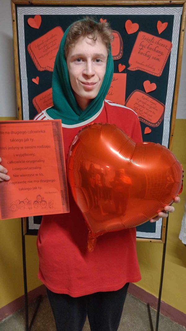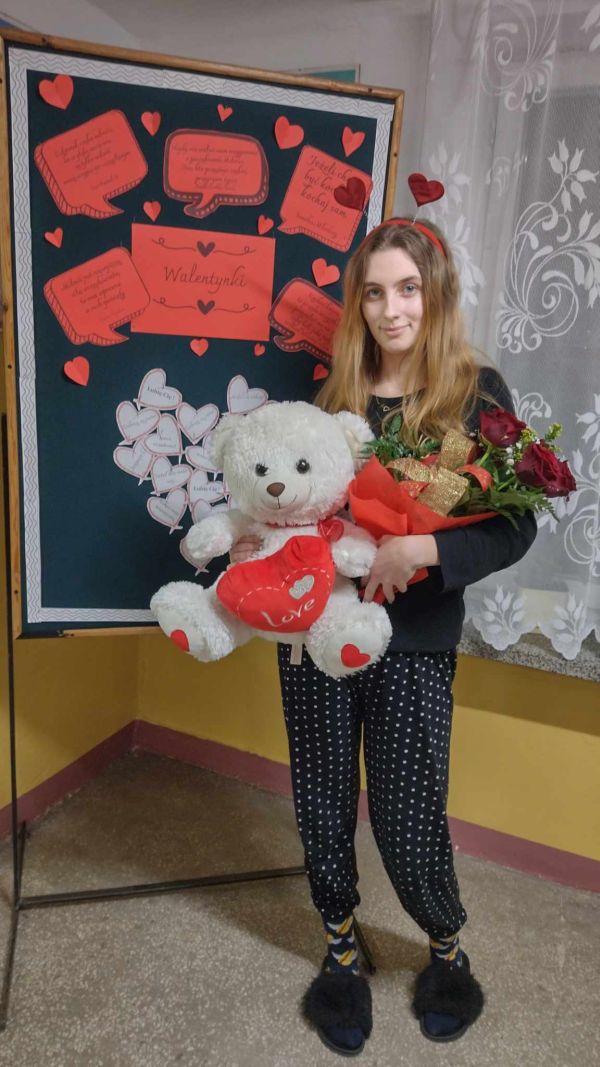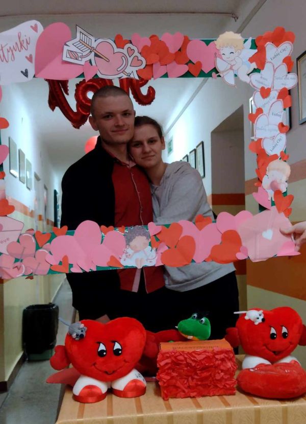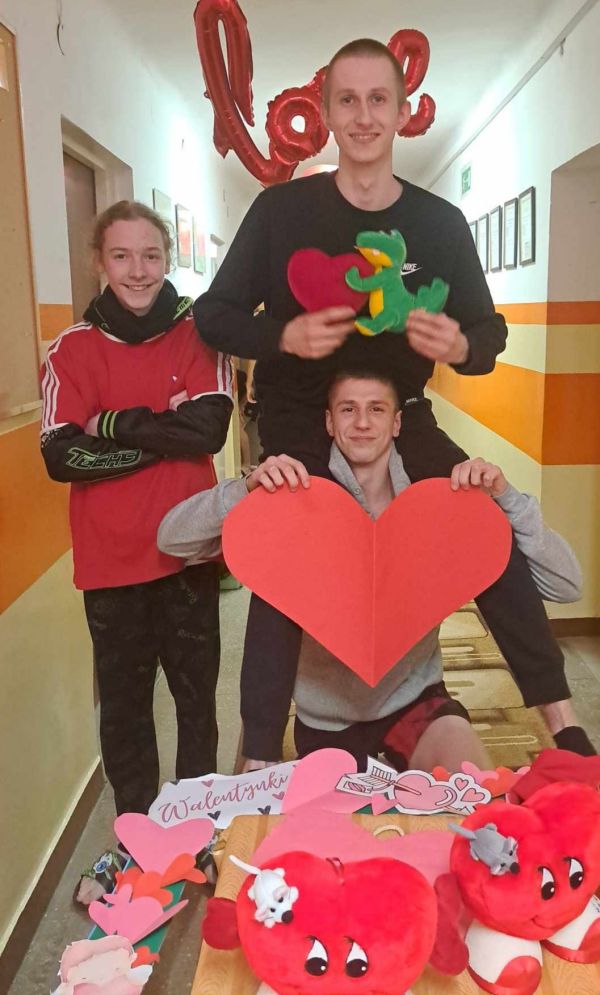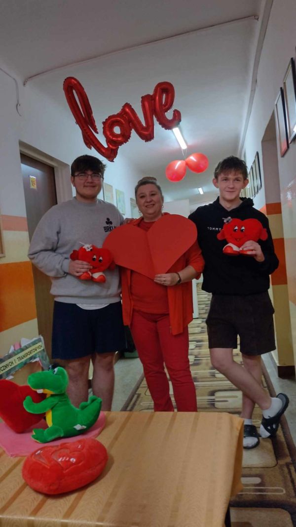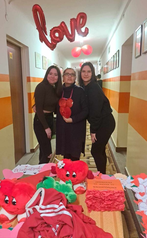 14 lutego obchodziliśmy w internacie Walentynki. Z tej okazji postanowiliśmy założyć czerwone ubrania, które symbolizowały kolor miłości. Pięknie udekorowany korytarz wprowadził nas w atmosferę tego święta. Każdy mógł sobie zrobić piękne zdjęcia w walentynkowej fotobudce w otoczeniu serc i pluszowych walentynek. Była również poczta walentynkowa, poprzez którą mieszkańcy internatu wyrazili ciepłe i przyjacielskie uczucia wobec siebie. Wychowawczynie p. Agnieszka Baran i p. Agata Włodarczyk wykorzystały to święto, by przypomnieć wychowankom o wartości miłości do samego siebie i potrzebie budowania poczucia własnej wartości. Uczestnicy warsztatów otrzymali motywacyjne walentynki. Na zakończenie obchodów Dnia Zakochanych odbyło się karaoke – wspólne śpiewanie najpiękniejszych piosenek o miłości. W tym wyjątkowym dniu panowała u nas radosna, przyjazna i życzliwa atmosfera i wielu mieszkańców aktywnie włączyło się w obchody Walentynek w internacie.