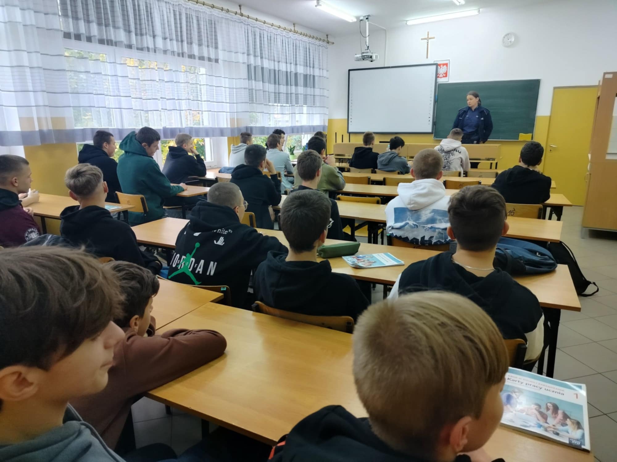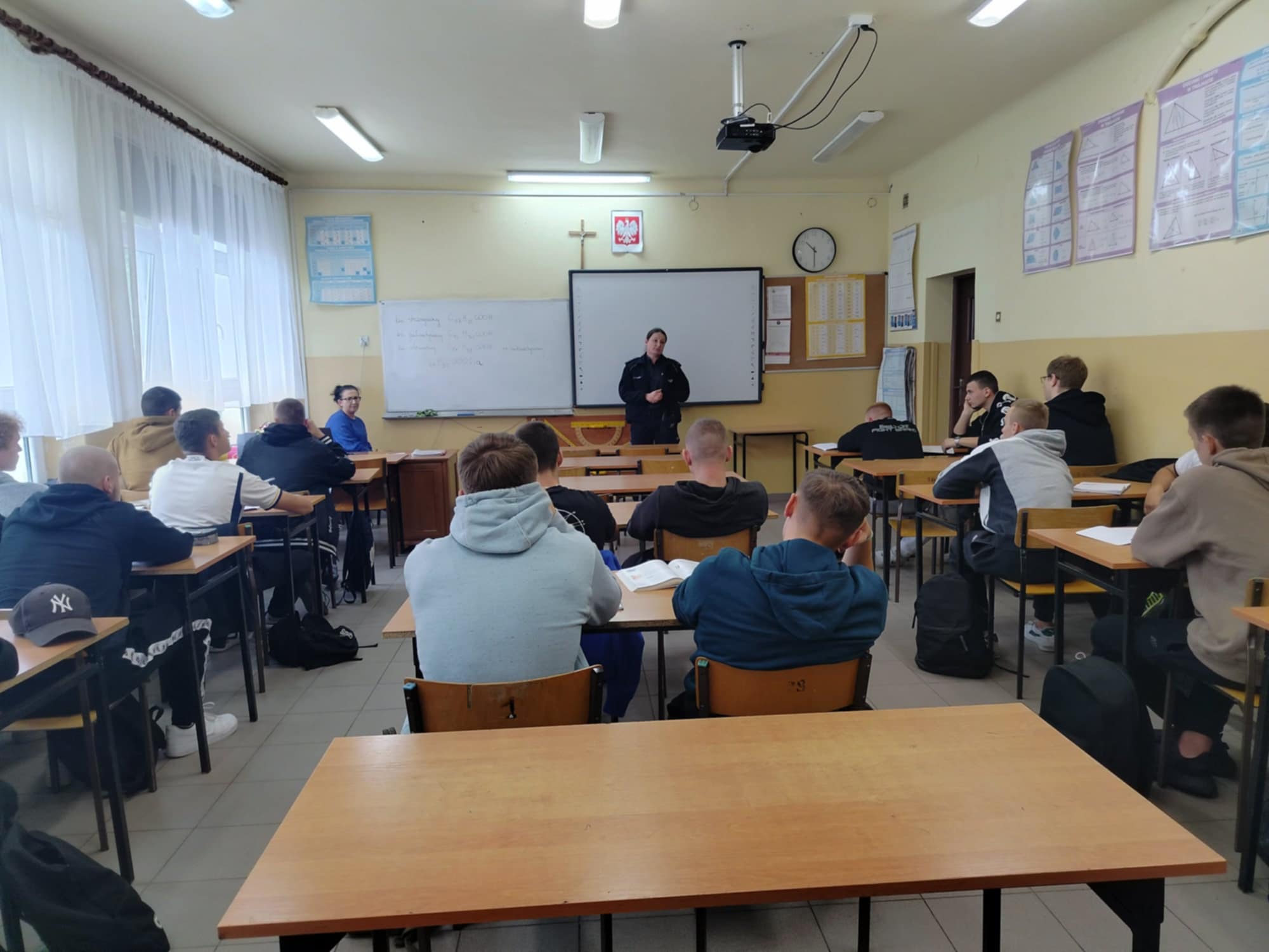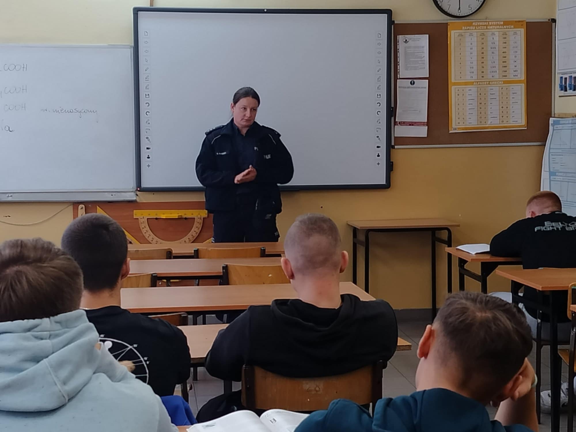 15 października młodzież naszej szkoły miała okazję spotkać się z sierż. szt. Katarzyną Kaszuba, która służbę w Policji pełni od 2009 roku, natomiast od 5 lat jest dzielnicową Wydziału Prewencji Komendy Miejskiej Policji w Chełmie. Funkcjonariuszka odwiedziła klasę I ae, gdzie przeprowadziła rozmowy z uczniami na temat rodzajów przemocy i agresji występujących w środowisku szkolnym oraz Internecie i jej konsekwencjach prawnych. Podczas spotkania policjantka wyjaśniła zebranym wiele pojęć związanych ze zjawiskiem przemocy w sieci, jak również podkreśliła to, czego nie mogą i nie powinni robić korzystając z Internetu.