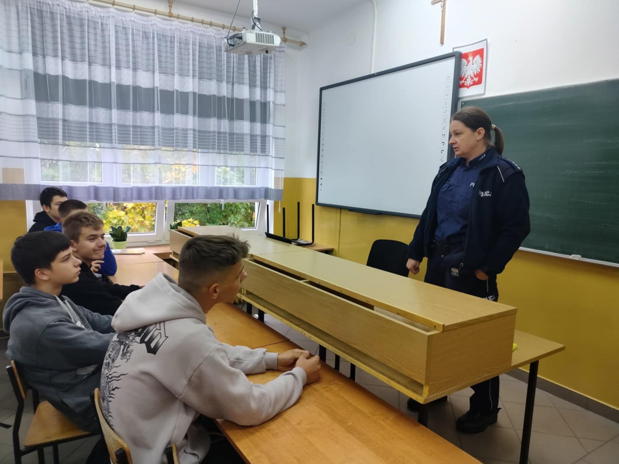 Zajęcia z przedstawicielem Policji są jednymi z wielu działań realizowanych w ramach programu profilaktycznego naszej szkoły. Serdecznie dziękujemy Policji za wizytę w naszej placówce.