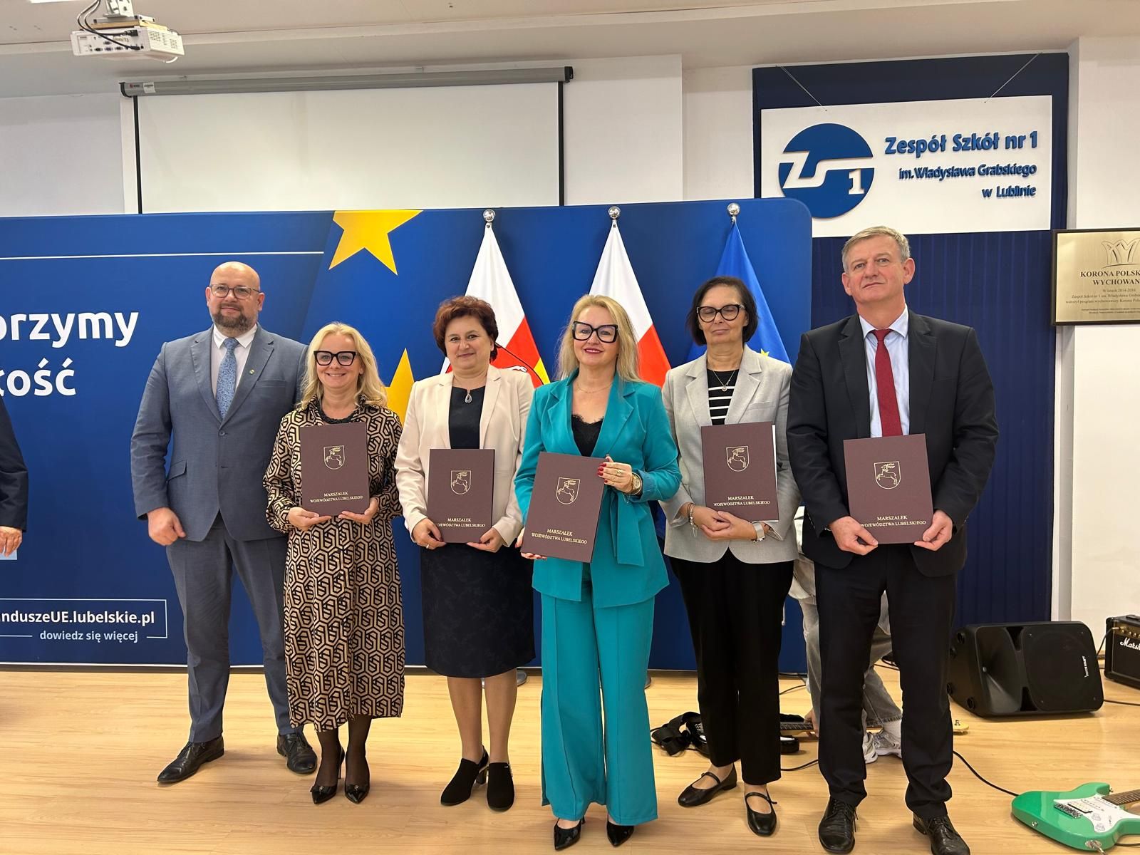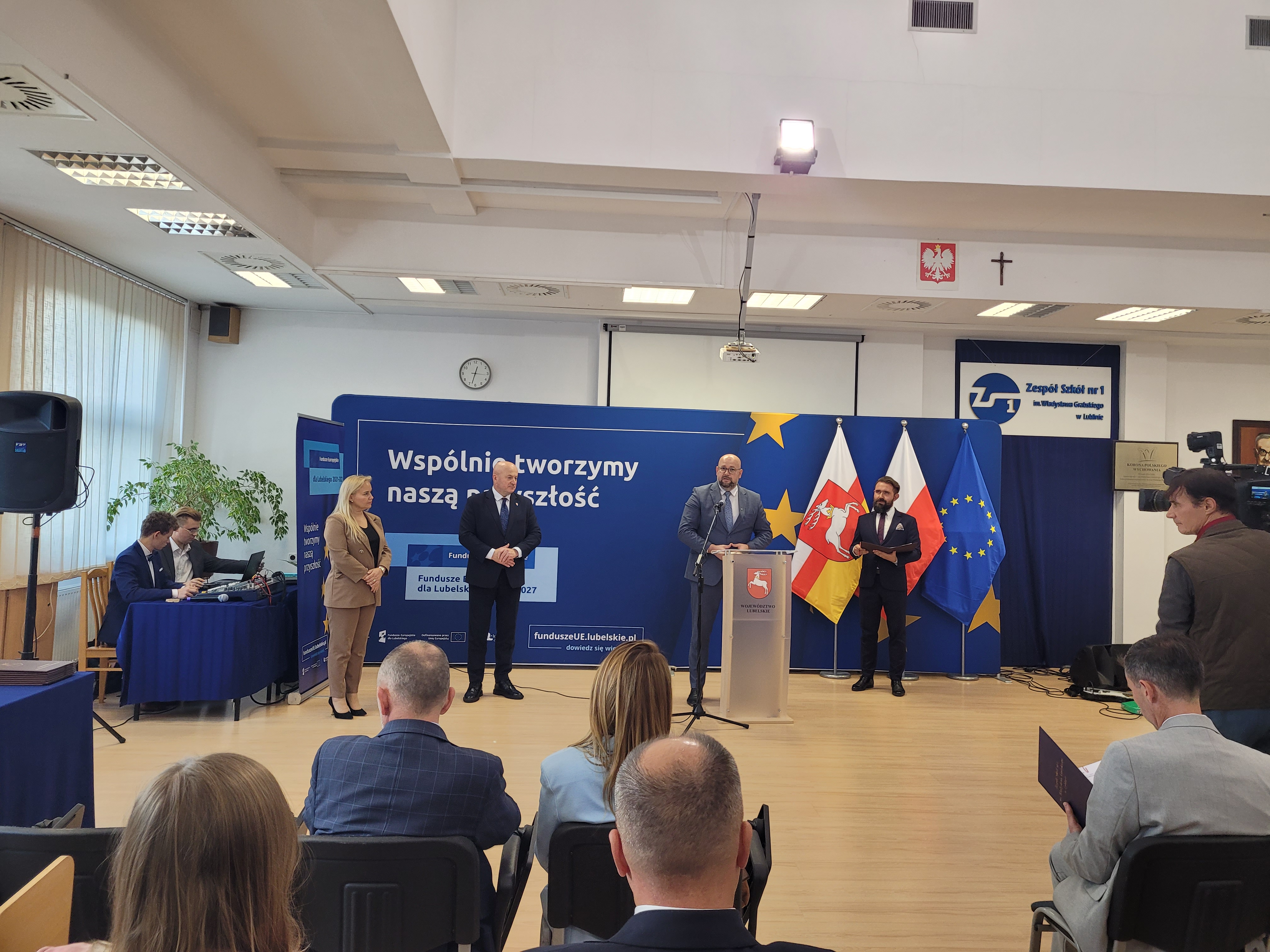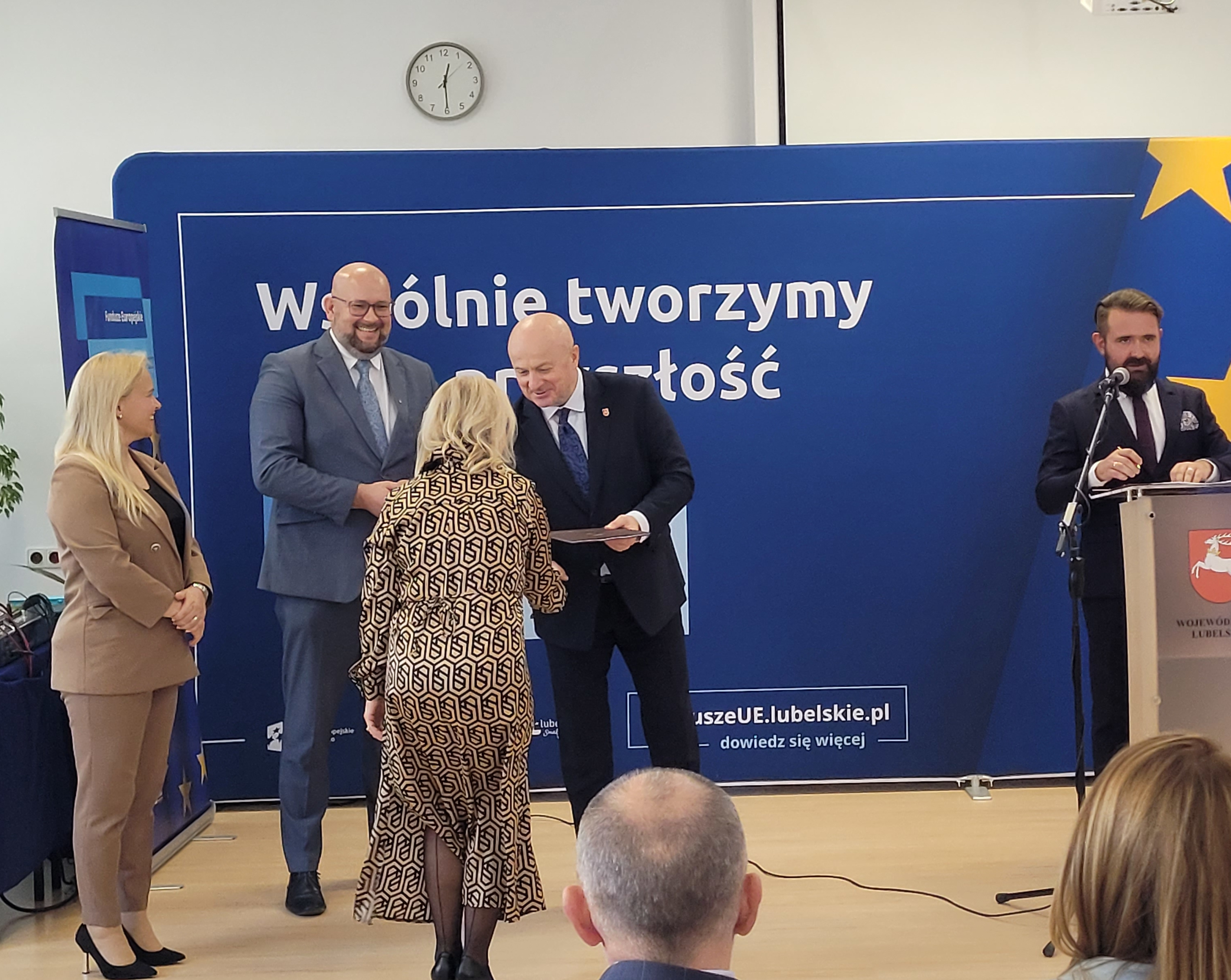 W dniu 16 października 2024 roku Marszałek Województwa Lubelskiego Pan Jarosław Stawiarski wręczył Pani Dorocie Bekasiewicz Dyrektor Zespołu Szkół Energetycznych i Transportowych im. Ks. Stanisława Staszica w Chełmie umowę na dofinansowanie projektu w ramach Działania 10.4 Kształcenie zawodowe programu Fundusze Europejskie dla Lubelskiego 2021-2027.