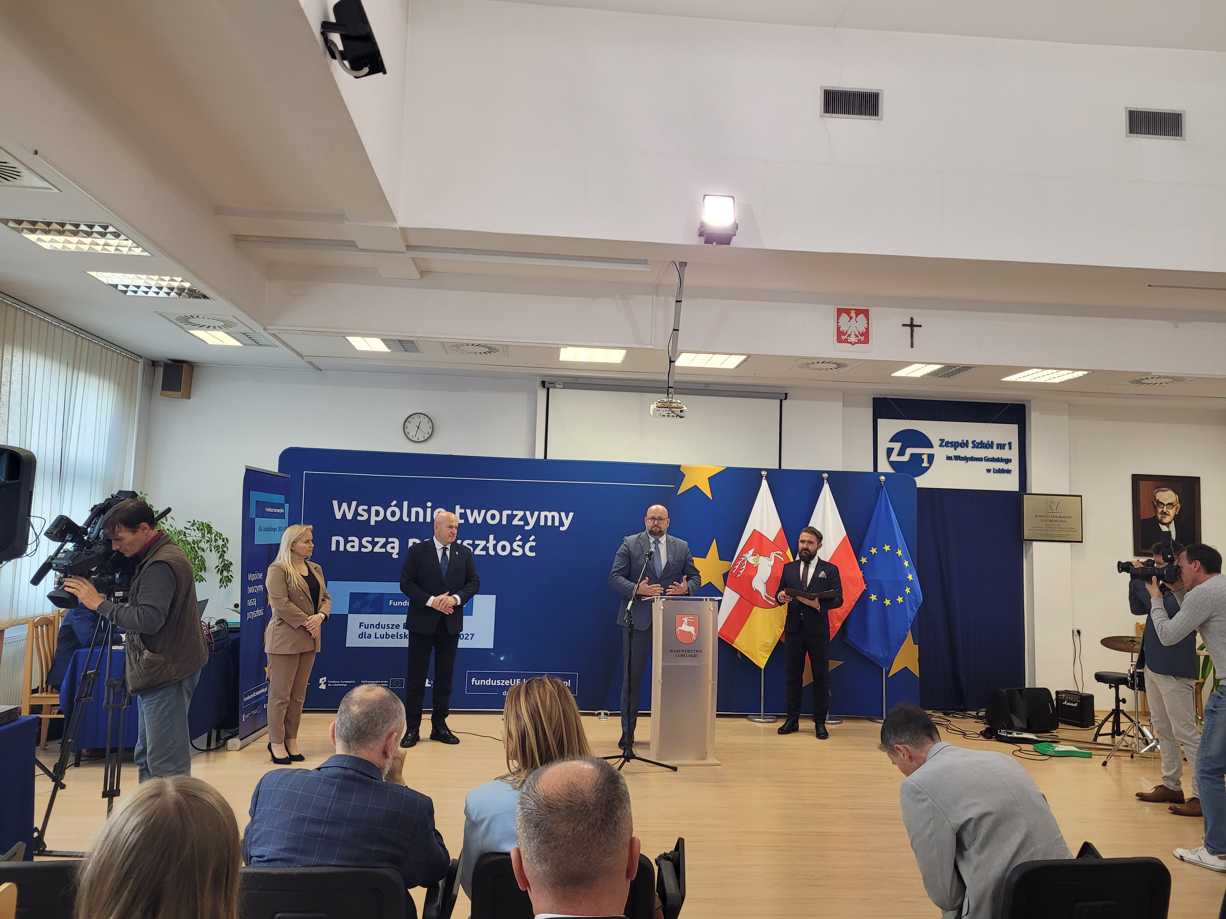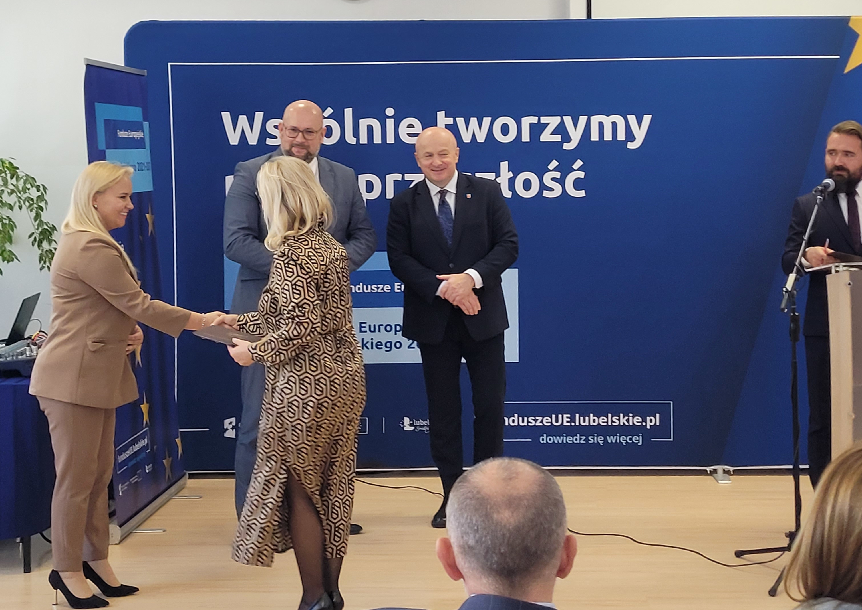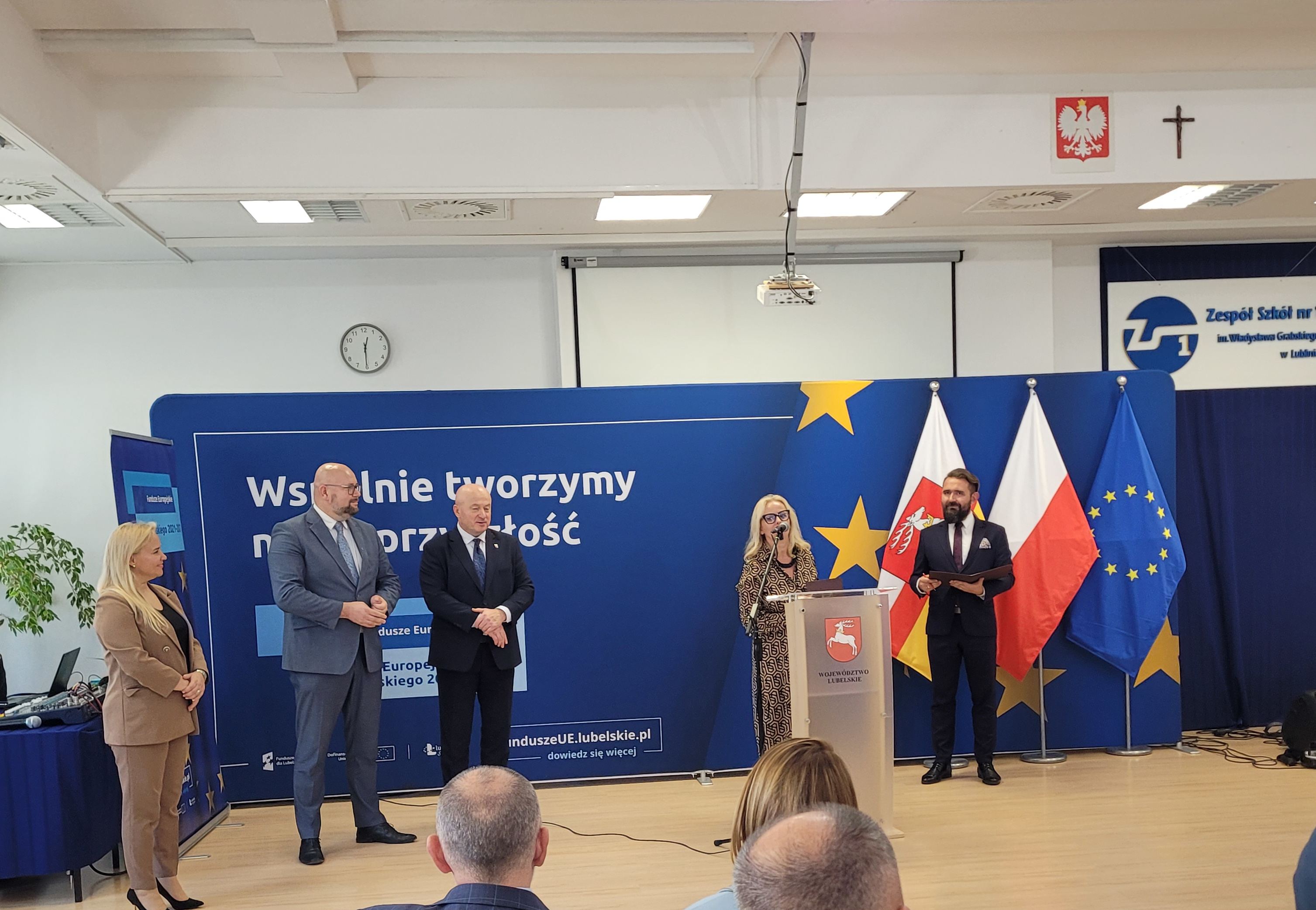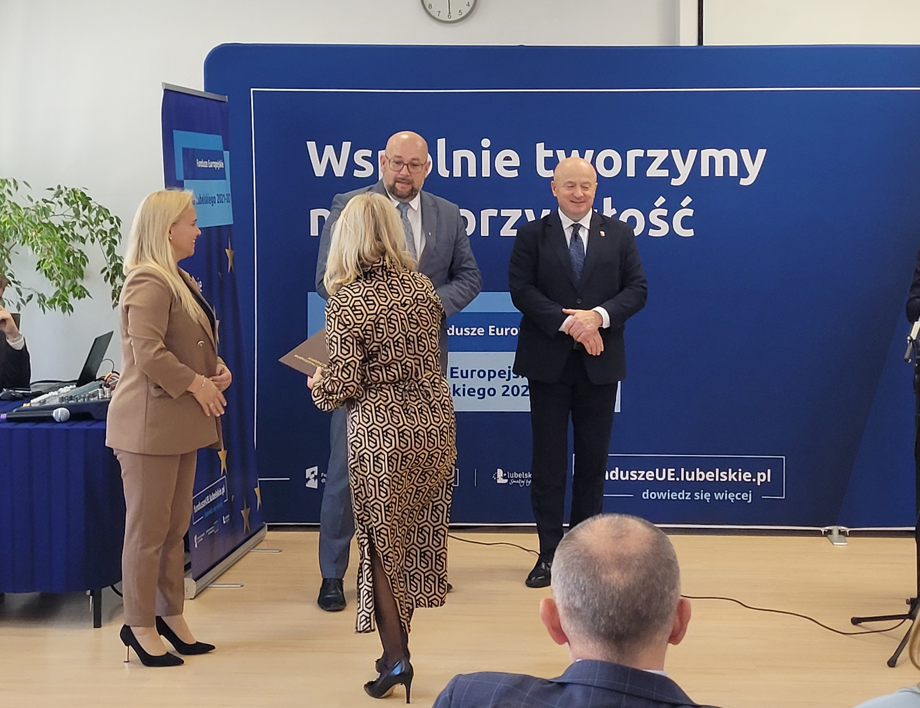 W dniu 16 października 2024 roku Marszałek Województwa Lubelskiego Pan Jarosław Stawiarski wręczył Pani Dorocie Bekasiewicz Dyrektor Zespołu Szkół Energetycznych i Transportowych im. Ks. Stanisława Staszica w Chełmie umowę na dofinansowanie projektu w ramach Działania 10.4 Kształcenie zawodowe programu Fundusze Europejskie dla Lubelskiego 2021-2027.