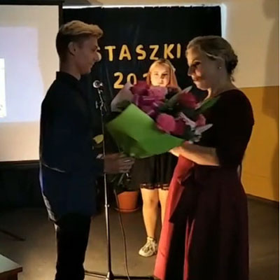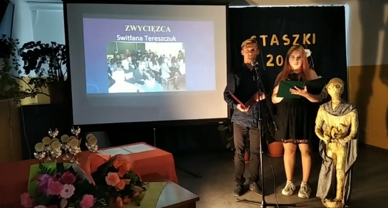 Społeczność uczniowska ZSEiT w oryginalny sposób, z zachowaniem pandemicznych zasad bezpieczeństwa, uhonorowała nauczycieli z oryginalną i wyrazistą osobowością, wręczając im podczas wirtualnej gali statuetki „Staszków.”