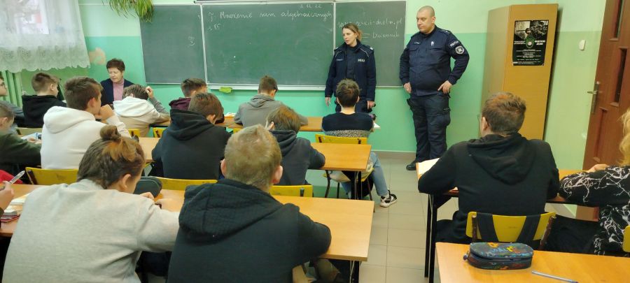 Podczas spotkania, uczniowie dowiedzieli się jaką odpowiedzialność karną ponoszą osoby nieletnie. Zostali zapoznani z konsekwencjami popełniania czynów zabronionych i przestępstwami, takimi jak: cyberprzemoc, wyśmiewanie, poniżanie, zastraszanie oraz posiadanie i handel narkotykami. Policjanci przypomnieli młodzieży o systematycznym uczęszczaniu do szkoły. Wagary, spożywanie alkoholu i nierealizowanie obowiązku szkolnego przez nieletniego podlega postępowaniu przed sądem są czynami demoralizującym. Spotkanie uświadomiło zebranym uczniom, że błędy popełniane w wieku młodzieńczym mogą mieć swoje poważne konsekwencje w późniejszym, dorosłym życiu.