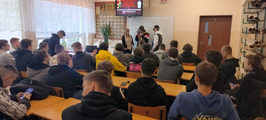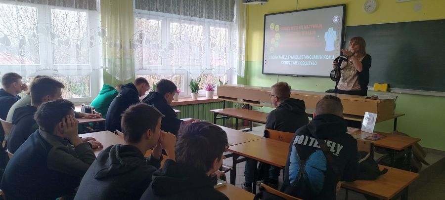 W dniu 30.03.2023 r. odbyło się spotkanie uczniów z Panią Anną Kołotą - przedstawicielem Powiatowej Stacji Sanitarno-Epidemiologicznej w Chełmie, związane z profilaktyką uzależnień. Młodzież z klas 1ER, 2KR, 2EM, 2SL, 3L, 4S, 3e miała możliwość zdobycia cennych informacji na temat substancji psychoaktywnych i ich oddziaływania na organizm. Spotkanie cieszyło się dużym zainteresowaniem. Istotą zajęć było upowszechnienie wśród młodzieży wiedzy dotyczącej zagrożeń związanych z uzależnieniem od substancji psychoaktywnych.