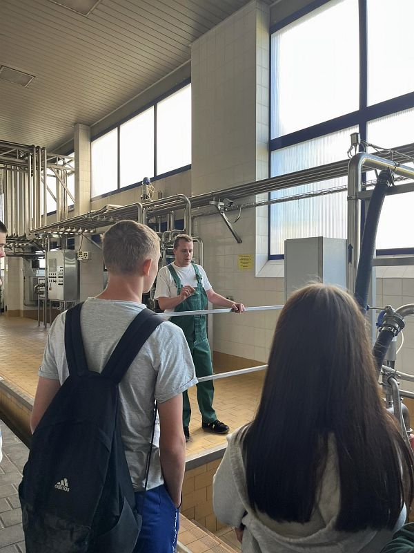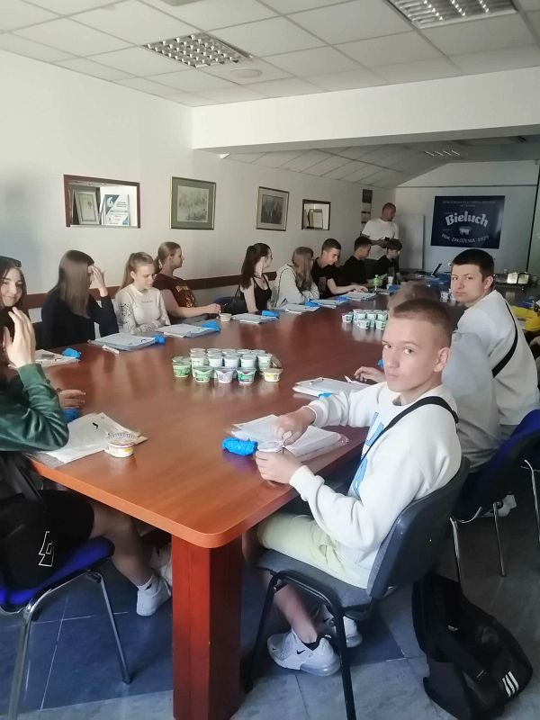 31 maja 2023 r. uczniowie klasy 1 technikum spedycyjno-logistycznego w wychowawcą Iwoną Jarlak uczestniczyli w wycieczce dydaktycznej do SM Bieluch. Podczas wyjścia poznali historię spółdzielni mleczarskiej, jej profil działalności, systemy magazynowe i transportowe. Młodzież zobaczyła jak wygląda proces produkcji nabiału od momentu przyjęcia mleka od rolników do momentu załadunku gotowych produktów. Mogła przekonać się, że w czasie produkcji firma bardzo duży nacisk kładzie na przestrzeganie przepisów sanitarnych i BHP oraz czystość urządzeń wykorzystywanych w produkcji. Cennym doświadczeniem był kontakt z wyposażeniem pomieszczeń magazynowych oraz szeregiem urządzeń produkcyjnych. Udział w wycieczce był dla uczniów cenną lekcją praktyczną. Serdecznie dziękujemy gospodarzom za życzliwą atmosferę, okazaną gościnność oraz wzorowe przygotowanie merytoryczne.