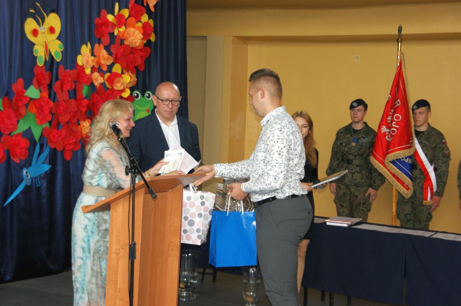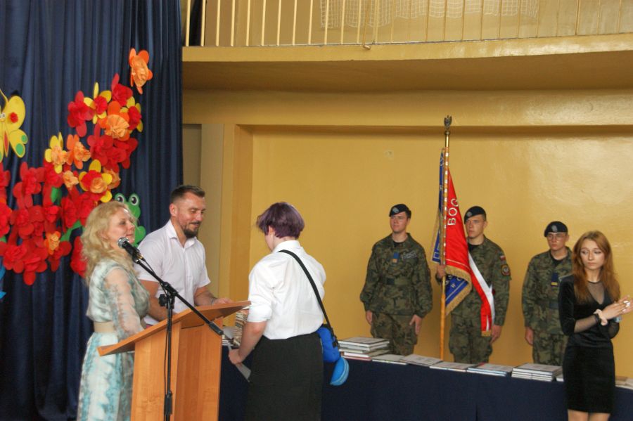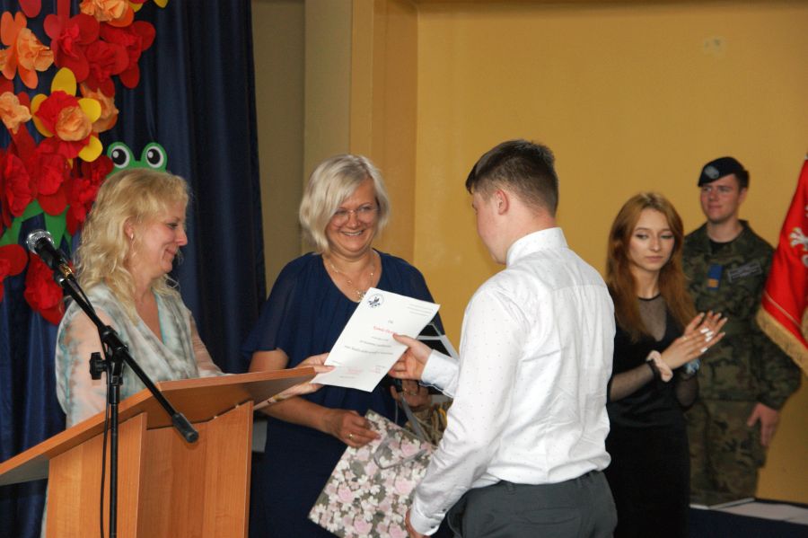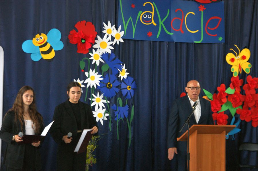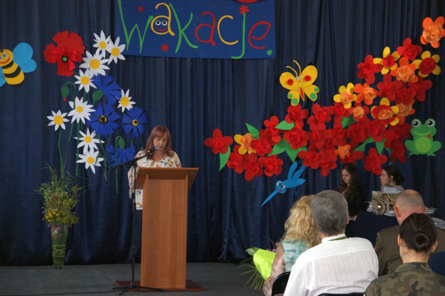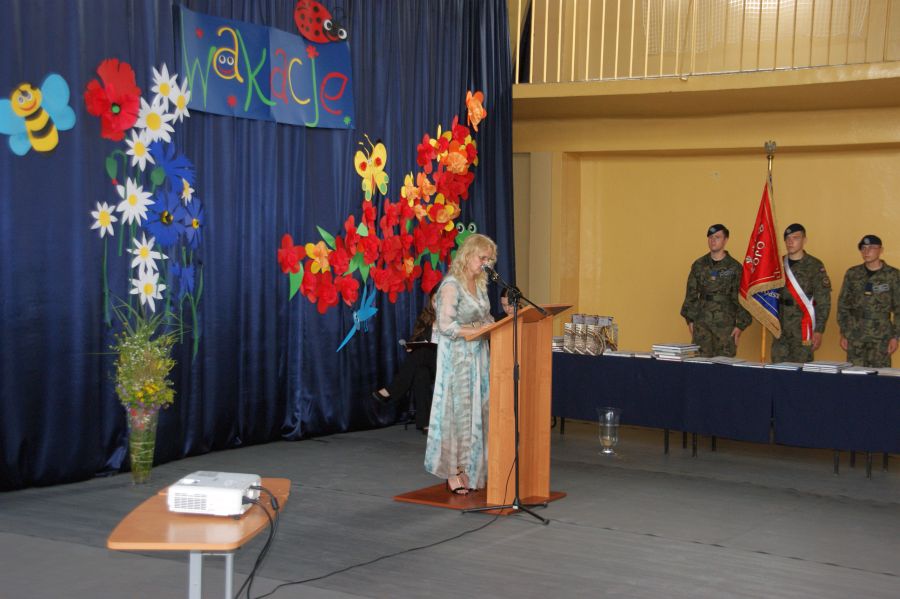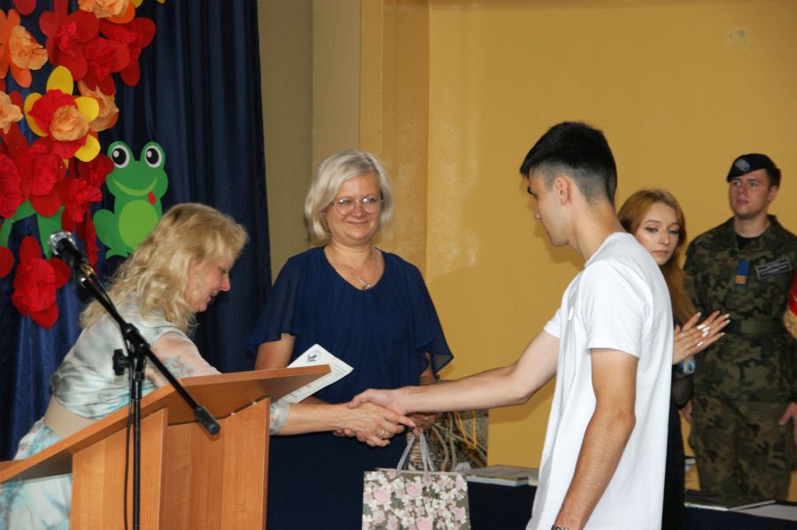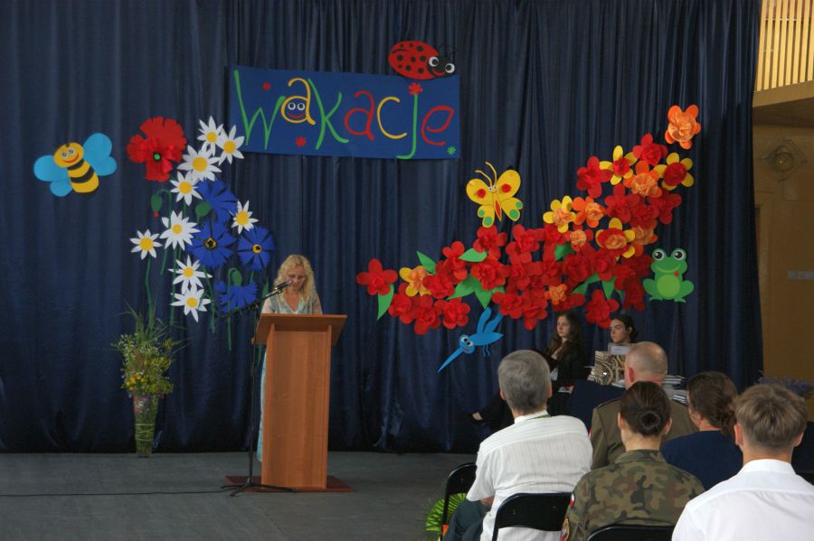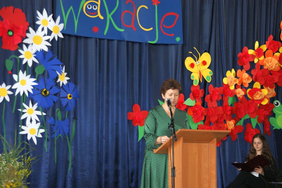 Pani dyrektor Dorota Bekasiewicz podziękowała młodzieży, nauczycielom i pracownikom szkoły za całoroczny wysiłek i zaangażowanie, za sukcesy w nauce i pracy, życząc wszystkim udanego i bezpiecznego wypoczynku. Pani wicedyrektor Katarzyna Śliwińska-Koguciuk odczytała okolicznościowe listy: Lubelskiego Kuratora Oświaty w Lublinie p.Teresy Misiuk oraz Prezydenta Miasta Chełm – p. Jakuba Banaszka.