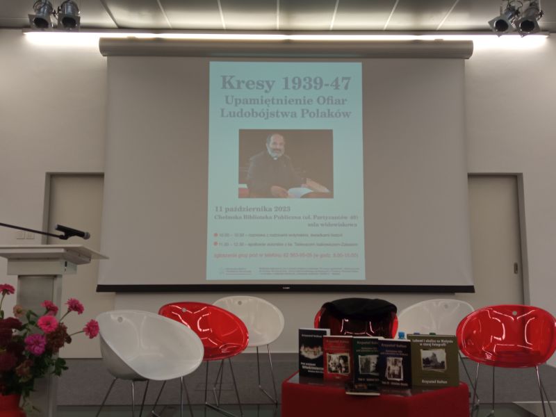Młodzież zgromadzona w sali widowiskowej Chełmskiej Biblioteki Publicznej w pierwszej części spotkania wysłuchała wspomnień rodzin wołyńskich, świadków tamtych tragicznych wydarzeń. W drugiej części zaś odbyło się spotkanie autorskie z ks. Tadeuszem Isakowiczem - Zaleskim - duchownym katolickim obrządku ormiańskiego i łacińskiego, aktywnym działaczem społecznym, pisarzem, poetą, publicystą, a przede wszystkim wytrwałym działaczem na rzecz ofiar ludobójstwa na Wołyniu.
