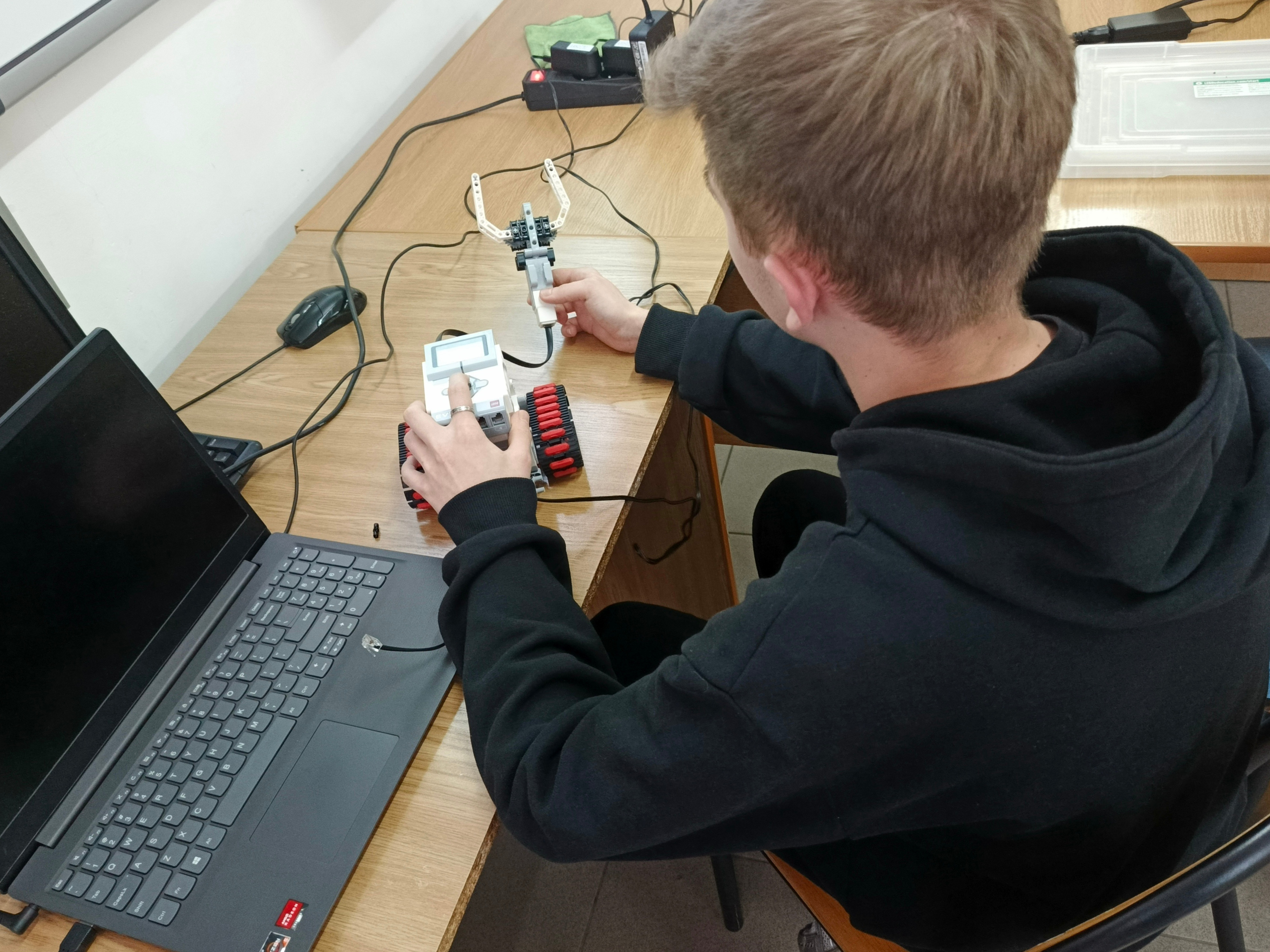 W ZSEiT Chełm, w ramach projektu „ERA ZAWODOWCÓW”, uczniowie mają okazję zgłębić tajniki robotyki! 12-godzinne szkolenie prowadzone przez doświadczonego specjalistę mgr inż. Tomasza Dąbrowskiego obejmuje wprowadzenie do robotyki, elementy sterowania i automatyki, a także praktyczne ćwiczenia z wykorzystaniem Lego Mindstorms i robota humanoidalnego Huno RQ. Uczestnicy nauczą się budować i programować autonomiczne pojazdy, sekwencje ruchów robotów, a także wykorzystywać ramię robota Dobot Magician w edukacji. Celem szkolenia jest przygotowanie do przyszłych wyzwań zawodowych związanych z automatyzacją i robotyką, rozwijając zarówno kompetencje techniczne, jak i umiejętność pracy w zespole.