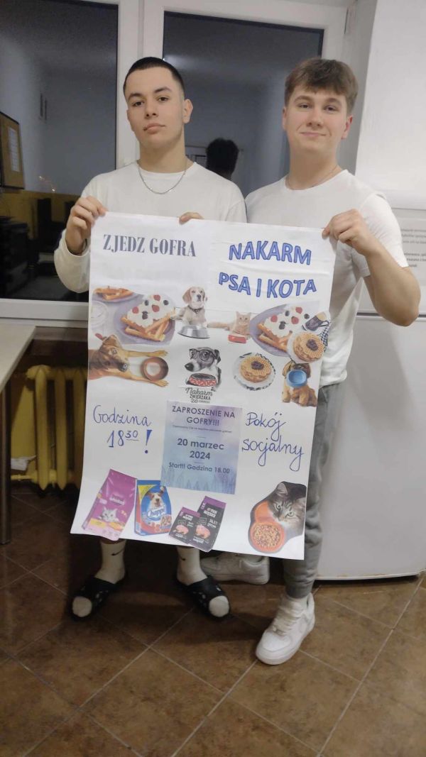 W lutym w internacie naszej szkoły odbyła się akcja pod hasłem „ Zjedz naleśnika i gofra, nakarm psa i kota”.