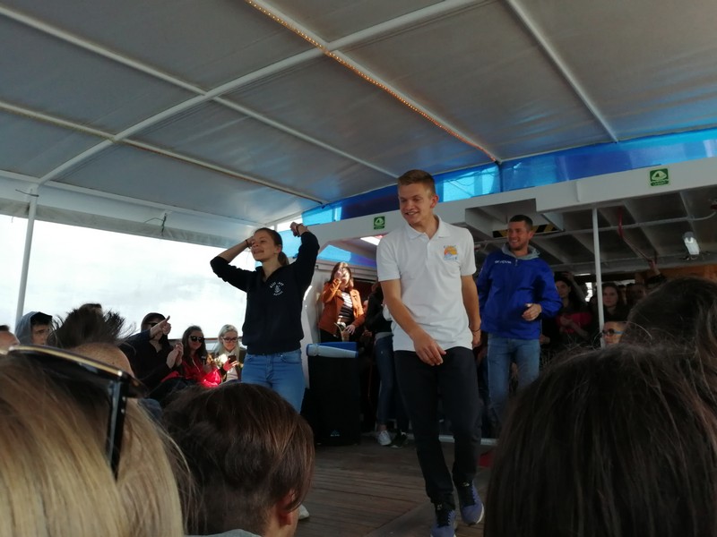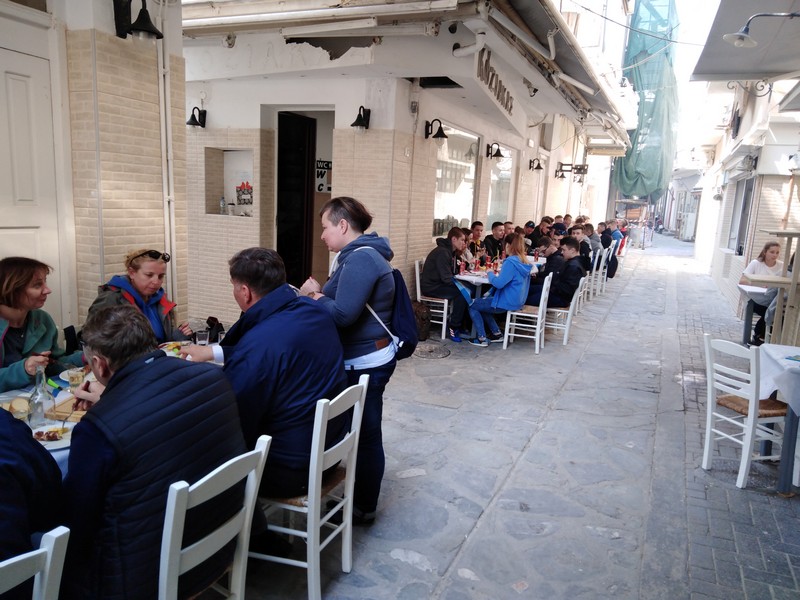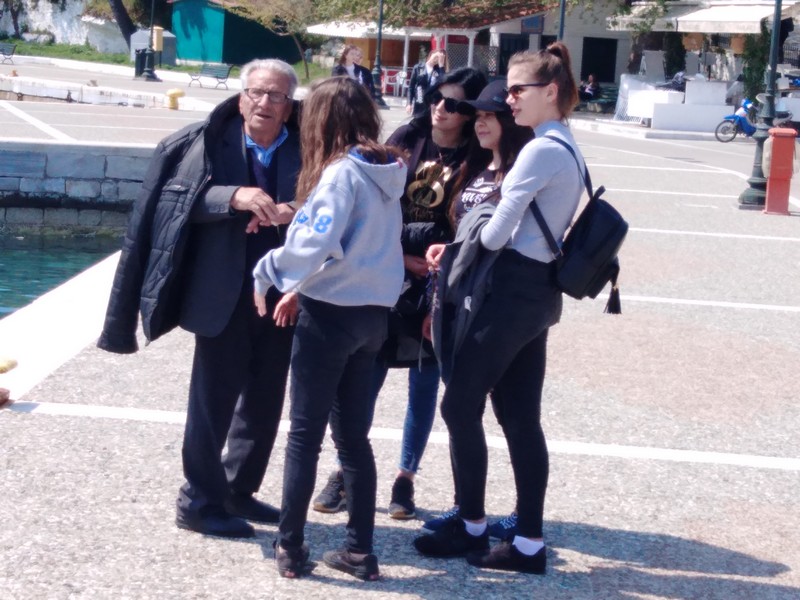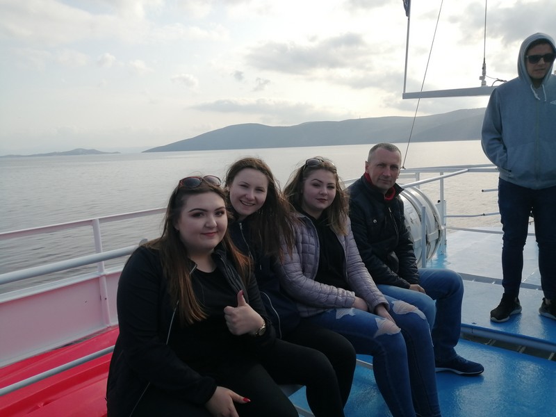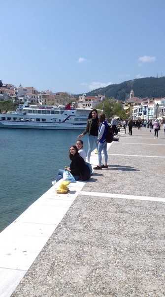 Czwarty dzień zaczął się bardzo wcześnie. Po śniadaniu jeszcze o świcie, udaliśmy się autokarami do portu w miejscowości Amaliapolis w zatoce Pagasitikos, z którego wyruszyliśmy statkiem ELISABET CRUISES na wyspę Skiathos pod wodzą kapitana Pangiotisa. W trakcie rejsu mieliśmy okazję zobaczyć drugą co do wielkości, zaraz po Krecie, wyspę o nazwie Eubea (czyt. Evia). Na statku kapitan Panagiotis wraz ze swoją siostrą zaprezentowali nam tradycyjny grecki taniec sirtaki-Zorba, mieliśmy okazję nauczyć się kroków Sirtaki i do portu wpłynęliśmy w tanecznych nastrojach. O wyspie Skiathos, twierdzy Bourtzi i pomniku żeglarza niezwykle ciekawie opowiedział nam pilot Kuba. Następnie wybraliśmy się wszyscy razem na punkt widokowy, gdzie mieliśmy okazję zobaczyć Kościół św. Mikołaja - patrona rybaków i osób związanych z morzem, wieżę zegarową, panoramę starego i nowego portu wyspy Skiathos. Odwiedziliśmy również plażę pod nazwą Koukounaries-plaża szyszkowa, na której co odważniejsi uczniowie mieli okazję zażyć kąpieli morskich. Dzień zakończyliśmy z fantastycznymi humorami oraz licznymi zdjęciami.
