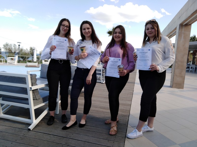 Logistycy i spedytorzy poznali swoje kierunki w ujęciu innej, psychologicznej strony. Wykładowca, zapraszając wszystkich uczniów do udziału w zajęciach, uświadomił nam, że w ciągu logistyczno-spedycyjnym wszystko zależy od pozycji człowieka - jego zaangażowania i kreatywności. Dziesiąty, przedostatni dzień praktyk spędziliśmy przed komputerami, projektując swoje wizytówki. Ostatniego dnia otrzymaliśmy zasłużone certyfikaty oraz prezent w postaci kubka, zgodnie z historią zaprojektowanego przez Pitagorasa. Wg. legendy, studenci Pitagorasa nadużywali wina, kubek uczy umiaru w piciu, a także symbolicznie - w życiu. Po nalaniu zbyt dużej ilości napoju wino wylewa się otworem w dnie kubka. Nazajutrz, przepełnieni wrażeniami i dobrymi emocjami, wyruszyliśmy w długą drogę powrotną do kraju.