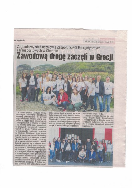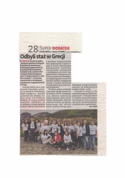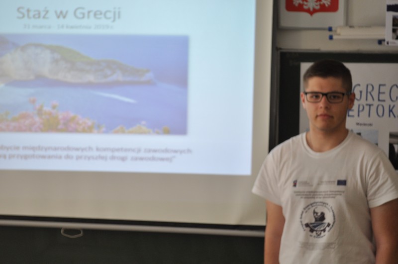 Dobiegł czas realizacji projektu pt. "Zdobycie międzynarodowych kompetencji zawodowych podstawą przygotowania do przyszłej drogi zawodowej nr 2018-1-PL01-KA102-049033". W dniu 31 maja 2019 r. dokonaliśmy podsumowania przygotowań i przebiegu stażu w Grecji dla uczniów technik spedytor i technik logistyk. Było to otwarte spotkanie dla wszystkich uczniów naszej szkoły.